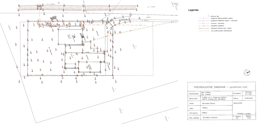Predrealizačné a porealizačné polohopisné a výškopisné zamerania.